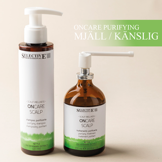 Scalp är en professionell terapilösning som tränger djupt in i hårbotten. Ger uppfriskande doft med noder av blommor och citron. Avancerad behandling som arbetar varsamt på cellulär nivå för att vårda och återställa hårbottenhälsan. Har du nyligen gjort hårtransplantation? Då rekommenderar vi Oncare Revitalizer (rosa). Läs ONCARE SCALP