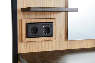 Svart matt väggmonterad spegel, rundade kanter med bricka och fotstöd - Bobbie B